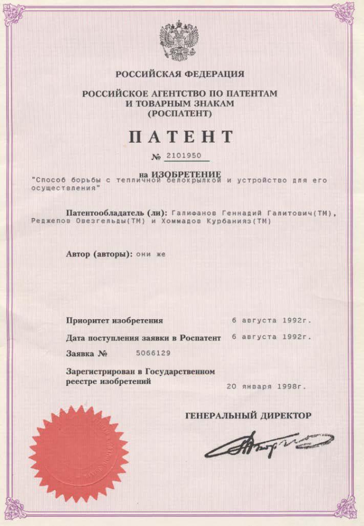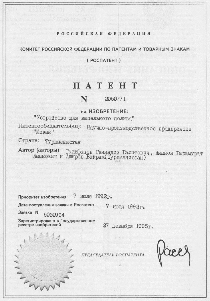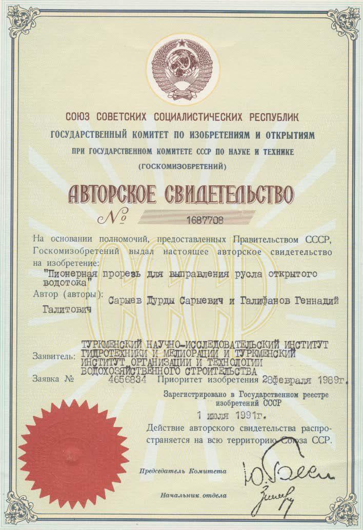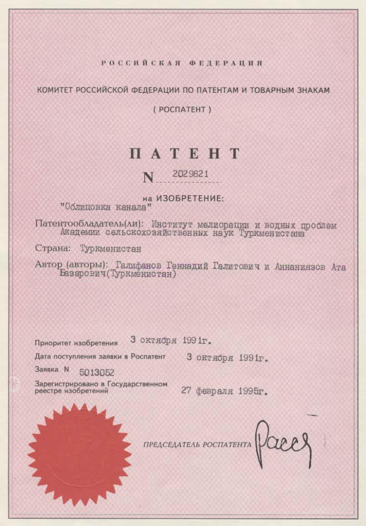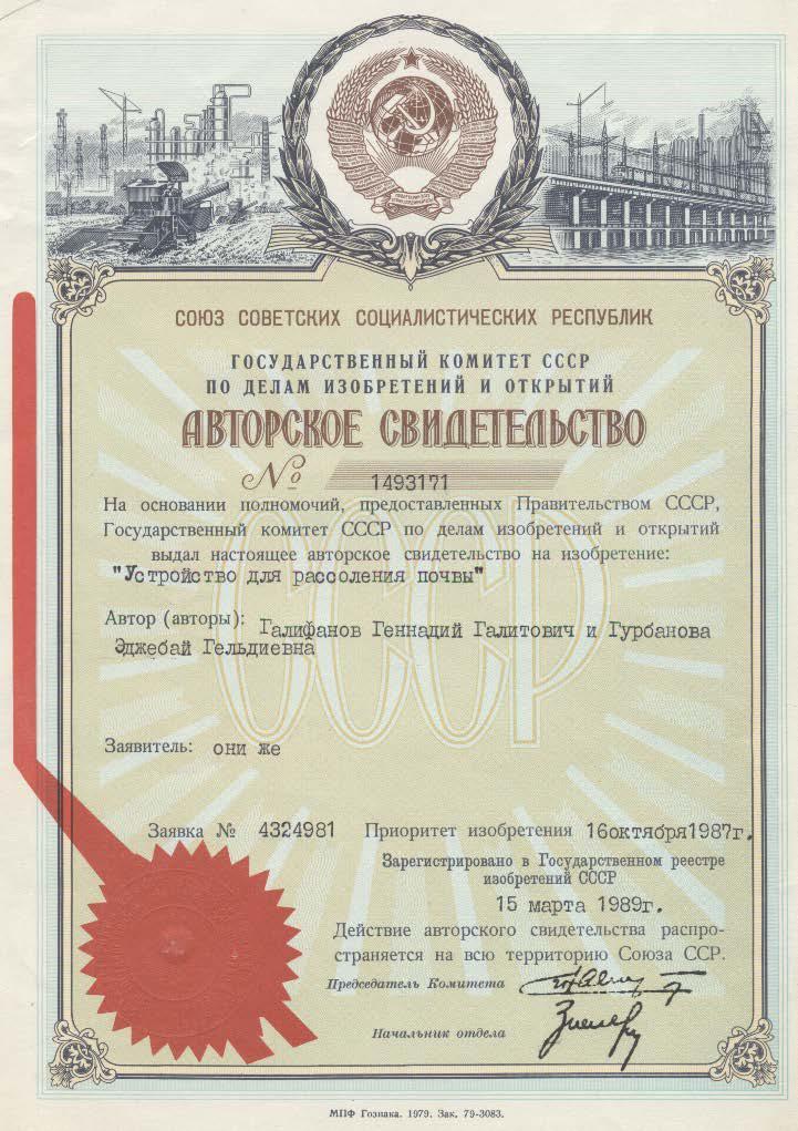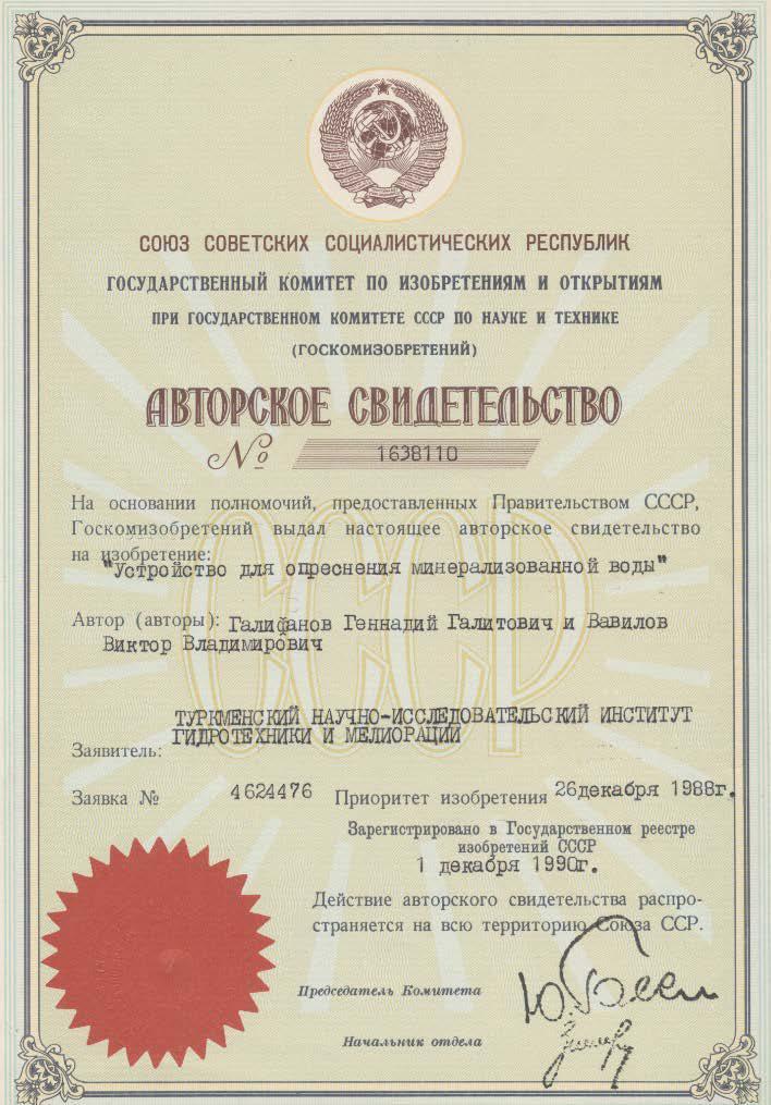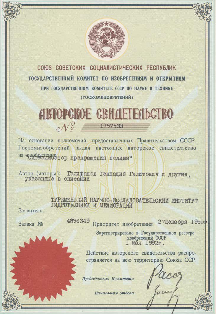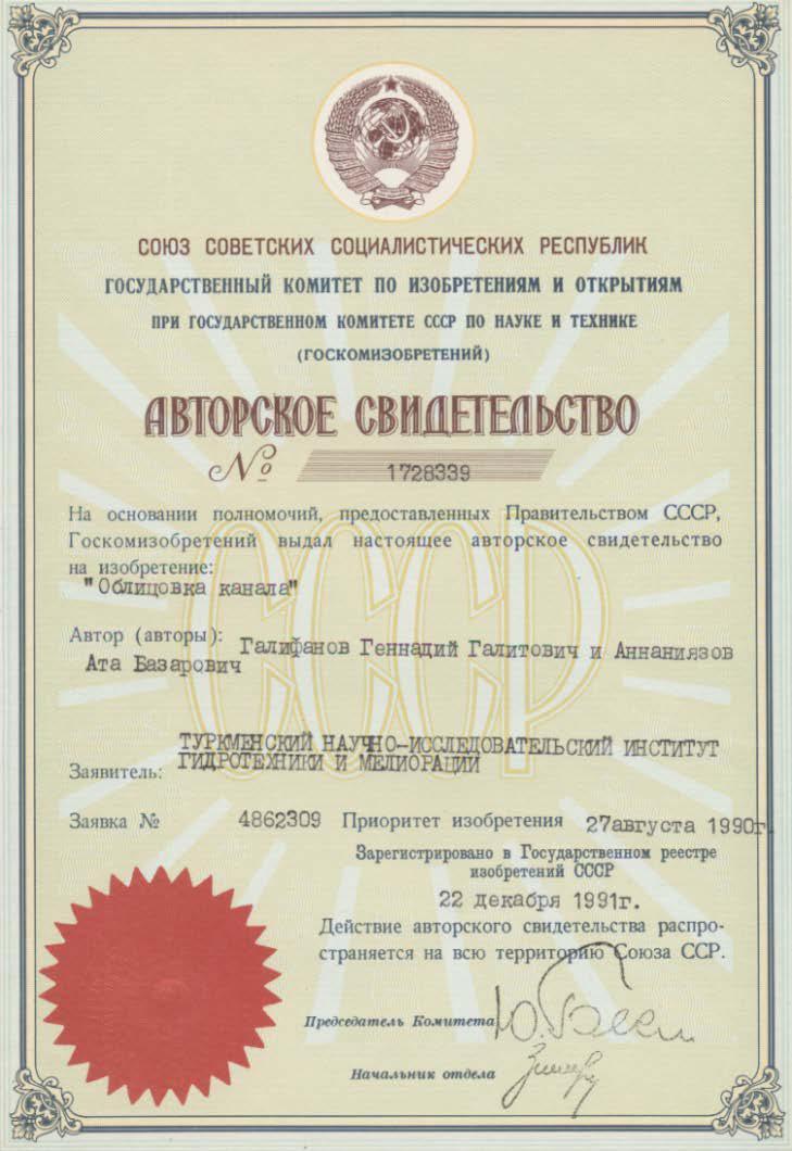 Кандидат сельскохозяйственных наук, заведующий лабораторией туркменского научно- исследовательского института гидротехники и мелиорации, старший научный сотрудник, изобретатель Галифанов Геннадий Галитович является автором более 200 научных статей в области сельского хозяйства, мелиорации земель, эксплуатации гидромелиоративных систем и охраны интеллектуальной собственности, в том числе книг «Охраноспособность товарных знаков» (2014), «Охраноспособность и охрана товарных знаков» (2018) «Проблемы изобретательства (1 том, 2023), а также пятидесяти одного изобретения, защищенных авторскими свидетельствами СССР и патентами Российской Федерации.